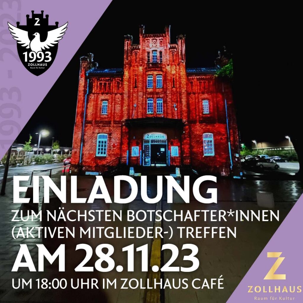 Aber das soll es an Projekten nicht gewesen sein. Wir haben natürlich schon wieder neue Ideen, was man im kommenden Jahr (und darüber hinaus) auf die Beine stellen könnte. Und weil wir mit euch zusammen mittlerweile so eine fabelhafte und starke Community haben und unbedingt mit euch weiterarbeiten möchten, wollen wir euch und alle weiteren Interessierten zu einem nächsten Treffen am Dienstag, den 28.11.2023 um 18 Uhr ins Zollhaus Café einladen.