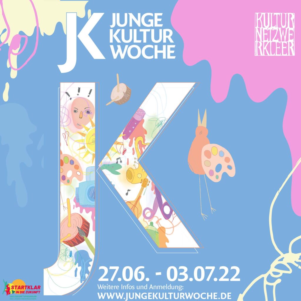 JUNGE KULTURWOCHE 2022: MONTAG, 27.06.2022 – SONNTAG, 03.07.2022 Mit dem Angebot der Jungen Kulturwoche möchten wir mit dem Kulturnetzwerk Leer Kinder und Jugendliche aus der Stadt und dem Landkreis Leer bei der Bewältigung der Auswirkungen der Corona-Pandemie unterstützen. Die Gruppe der Kinder und Jugendlichen ist die Gruppe, die während der letzten beiden Jahre aufgrund der […]