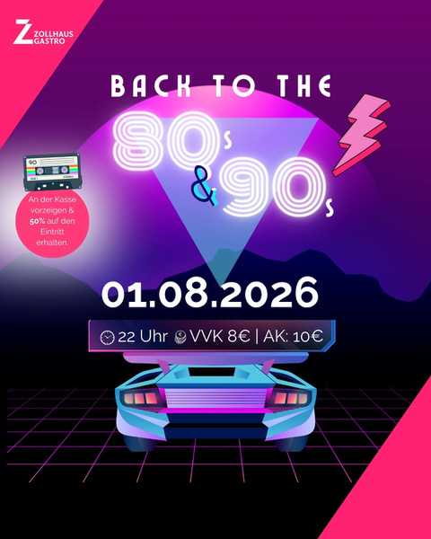 Am 01.08.2026 heißt es im Zollhaus: Neonfarben an, Schulterpolster raus und ab geht’s auf eine Reise in die kultigsten Jahrzehnte der Musikgeschichte! 🎤🕺