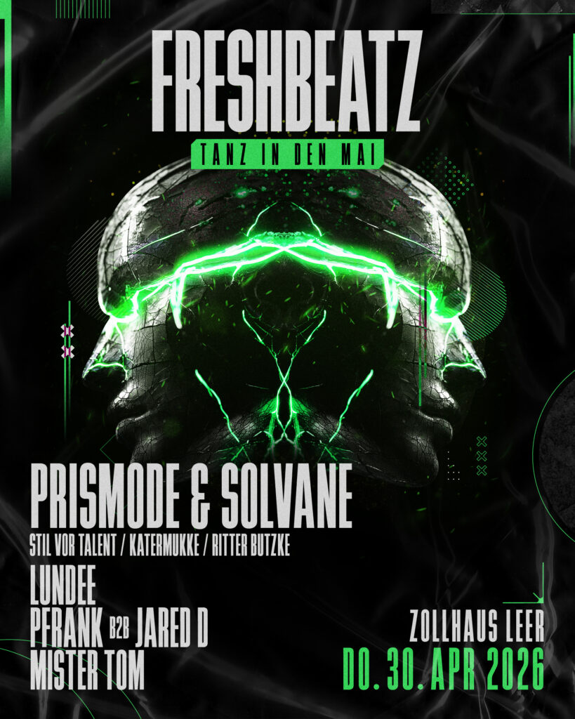 Am Donnerstag, 30. April 2026, verwandelt sich das Zollhaus Leer in den Hotspot für alle, die den Mai nicht nur begrüßen, sondern mit voller Lautstärke reinfeiern wollen. Als Headliner präsentieren wir Prismode & Solvane, die mit ihrem unverwechselbaren Mix aus melodischem Techno und treibenden Beats international für volle Floors sorgen. Supportet werden die beiden von Lundee, Pfrank b2b Jared D sowie Mister Tom, die das Publikum auf eine Reise durch tiefe Grooves, druckvolle Drops und Fette Basslines mitnehmen.