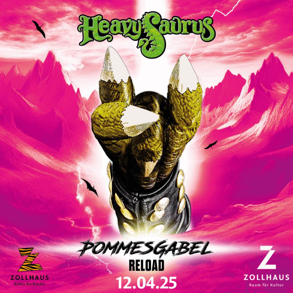 Weil alle – ob Mensch, Dino oder Drache – so viel Spaß dabei haben, wird die „POMMESGABEL TOUR“ verlängert: Gleich im Januar 2025 geht es weiter für HEAVYSAURUS (und die fünf Profimusiker, die in den coolen Dino-Kostümen stecken und live spielen). Die 3- bis 11-Jährigen und ihre Begleiter jeden Alters können sich auf ein einzigartiges Konzerterlebnis freuen: Eine Band mit richtigen Instrumenten auf großer Bühne, mit Lichtspektakel, Nebel, Funkenregen, Luftballons und Konfetti. Und natürlich mit den Songs, die viele Kinder (und Eltern) jetzt schon mitsingen können, wie „Kaugummi ist mega!“ oder „Rarrr“, der von vielen lachenden Mündern gerne laut mitgerufene Schrei der Dinos.