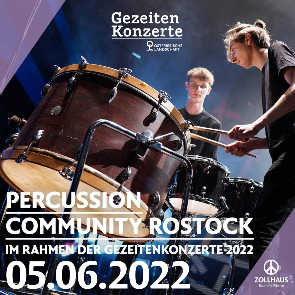 Die Percussion Community Rostock ist das preisgekrönte Schlagzeug-Ensemble der Hochschule für Musik und Theater Rostock. Bei der Gezeitenkonzerte-Premiere im Zollhaus Leer sprengen die jungen Gipfelstürmer die Grenzen von Klassik und Ethno, Jazz und Neuer Musik und vermischen die unterschiedlichsten Stile zu einem eindrucksvollen Klangspektakel.