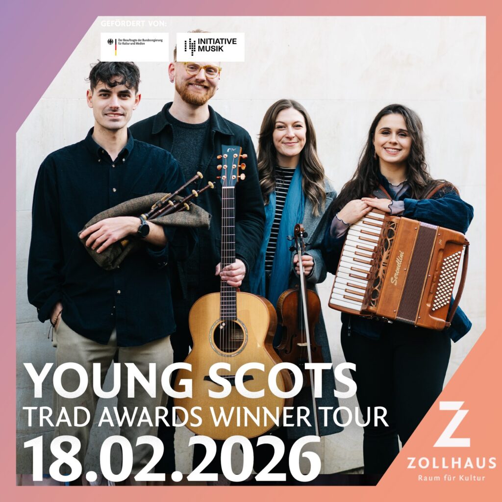 Schottischer Folk ist nicht nur Musik, sondern ein Lebensgefühl, das von Generation zu Generation weitergegeben wird und tief in der Kultur des Landes verwurzelt ist. Erlebt die Magie dieses musikalischen Erbes hautnah, wenn vier talentierte PreisträgerInnen und FinalistInnen – u.a. der renommierten BBC Radio Scotland Young Traditional Musician of the Year Awards – die Bühnen Deutschlands erobern werden.