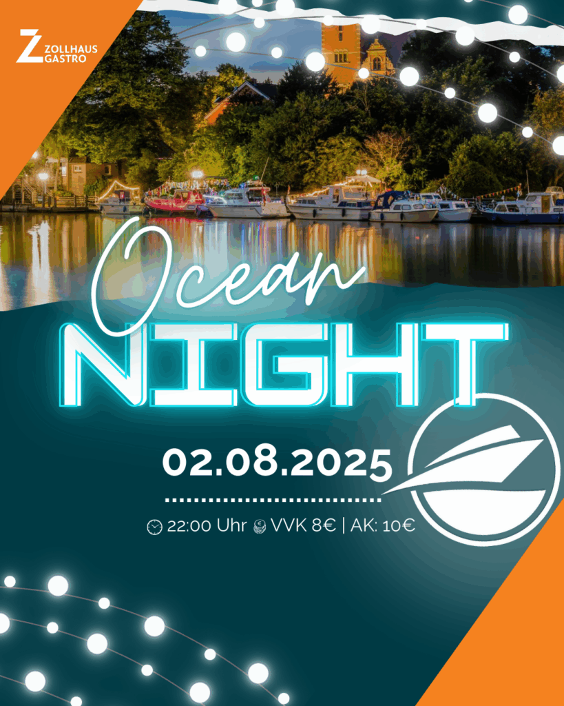 Die Maritime Woche 2025 endet mit einem absoluten Highlight: der OCEAN NIGHT im Zollhaus Leer! 🚢✨ Freut euch auf eine Liveband, eine atemberaubende Atmosphäre und eine unvergessliche Partynacht!